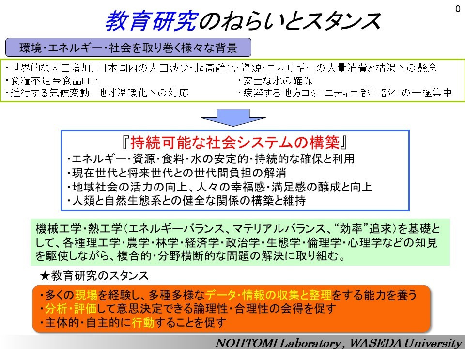 研究活動を進めるにあたっての、背景・動機・狙い、そして教育面で期待する効果を整理したものです。研究室の”色”を理解していただけるかと思います。