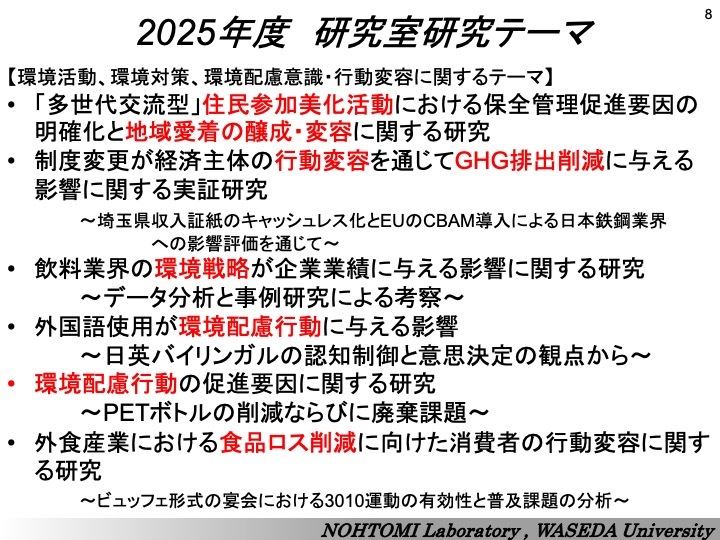是非、進学を考える学生さん、共同研究の可能性を模索している企業・公共団体等の皆さんは、上に挙げた研究テーマ例だけではなく、色々なテーマや取り組みの可能性がありますので、お気軽にお問い合わせ・ご相談ください。